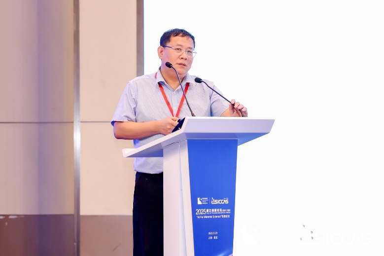 上海硅酸盐所前沿基础研究部主任、关键陶瓷材料全国重点实验室陶瓷材料智能化研究部执行主任刘建军作《Large Model and AI Agents for Electrochemical Energy Storage Materials Design》报告