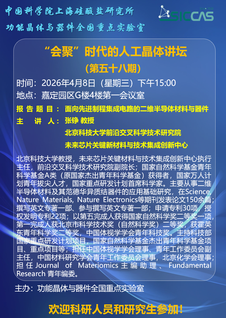 “会聚”时代的人工晶体讲坛(第五十八期)