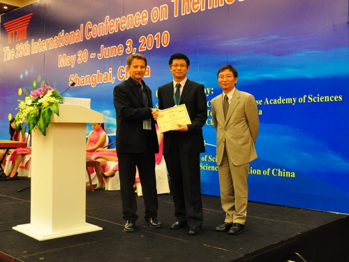 国际热电协会主席Thierry Caillat研究员和ICT2010组织委员会执行主席陈立东研究员为史迅颁发“The Young Investigator”奖