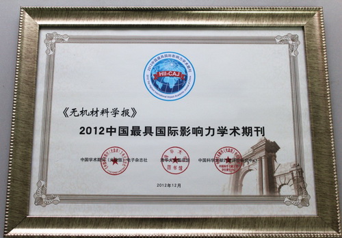 2012年12月26日,中国科学文献计量评价研究中心、清华大学图书馆和中国学术期刊(光盘版)电子杂志社联合在国家会议中心发布《中国学术期刊国际引证报告(2012版)》(简称《CAJ-IJCR》)及“中国最具国际影响力学术期刊”和“中国国际影响力优秀学术期刊”。由中国科学院上海硅酸盐研究所主办的《无机材料学报》入选“中国最具国际影响力学术期刊”,中宣部、新闻出版总署、科技部、教育部等有关领导为其授牌。