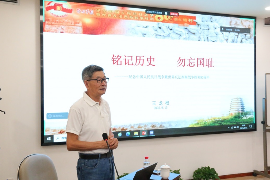 上海硅酸盐所原党委书记王龙根作了题为《铭记历史 勿忘国耻——纪念中国人民抗日战争暨世界反法西斯战争胜利80周年》的专题报告。杨金山传达了中共中国科学院党组2025年夏季扩大会议精神,他表示,要认真贯彻落实党中央赋予中国科学院的新使命新要求,加强系统谋划和统筹管理,更好发挥体系化建制化优势。希望老同志继续发挥经验优势,在研究所深化改革、加快抢占科技制高点进程中建言献策,为研究所改革创新发展作贡献。