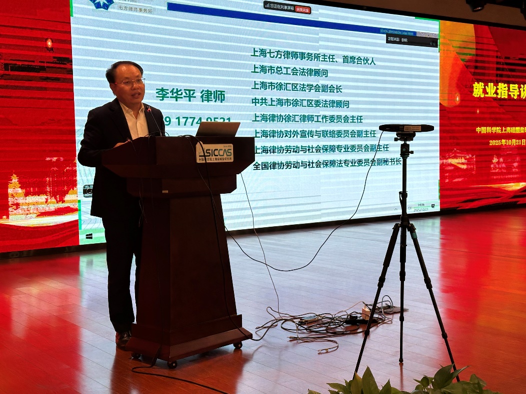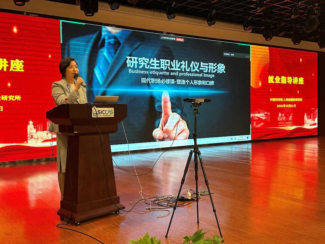 为帮助即将步入职场的2026届毕业生做好充分准备, 10月21日下午,中国科学院上海硅酸盐研究所举办就业指导讲座。七方律师事务所主任李华平律师、教育部中国成人教育协会认证高级礼仪培训师张滢应邀出席并作报告,152位2026届毕业研究生参加会议,会议由研究生部副主任陆彩飞主持。