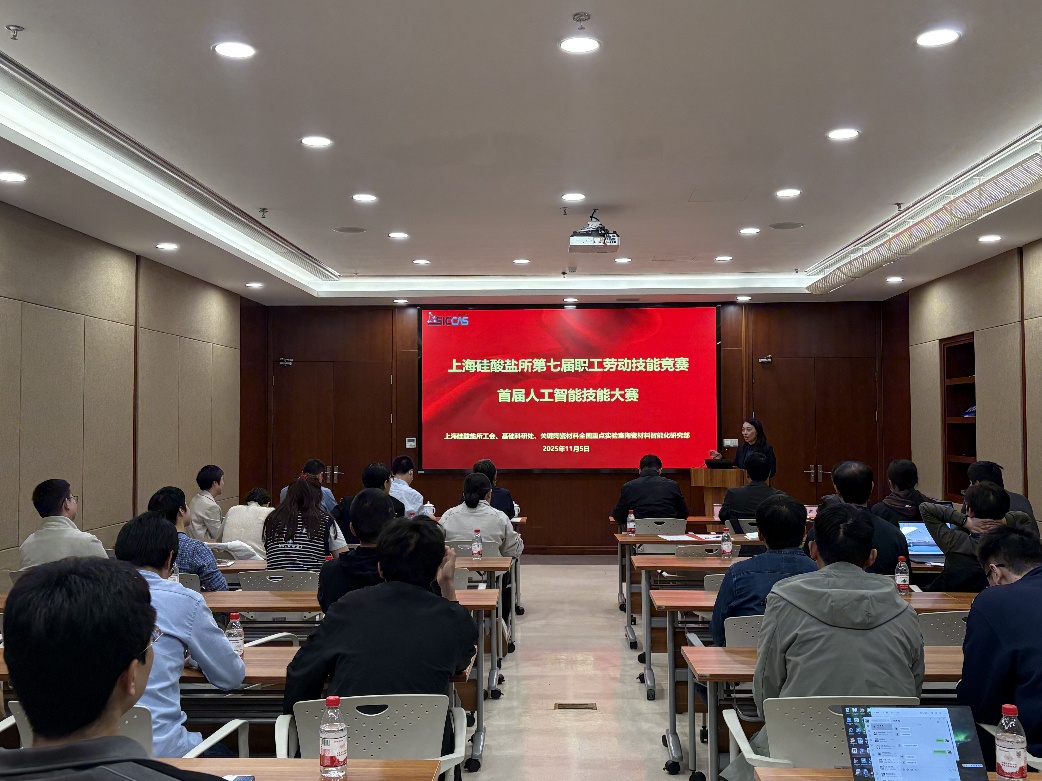 为贯彻落实习近平总书记关于工人阶级和工会工作的重要思想,引导职工争做“科创先行者、建功新时代”的楷模,中国科学院上海硅酸盐研究所于11月5日组织了以“炼本领、报祖国,材料筑梦新时代”为主题的第七届职工技能大赛-首届人工智能技能大赛,共计15支参赛团队参加此次大赛。大赛由所工会主办,基础科研处、关键陶瓷材料全国重点实验室陶瓷材料智能化研究部承办,邀请到了中国科学院院士、上海硅酸盐所研究员陈立东,上海大学教授任伟、中国科学院自动化研究所研究员李林静、上海人工智能实验室青年科学家郝红霞及上海硅酸盐所工会副主席曾毅研究员担任大赛评委。上海硅酸盐所副所长史迅研究员、工会主席孙伟嬿出席,基础科研处副处长沈沪江主持大赛。