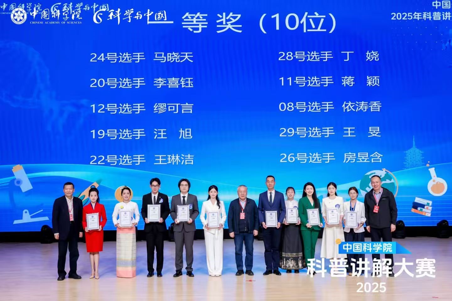 为深入贯彻落实《中华人民共和国科学技术普及法》,普及科学知识,弘扬科学精神,加强科普能力建设,11月27-29日,中国科学院2025年科普讲解大赛在广州举行。此次大赛由中国科学院学部工作局主办、中国科学院广州分院承办,来自中国科学院46家院属单位的84名选手参与,赛事通过直播方式向社会公众开放。经评委团从内容陈述、语言表达、整体形象等维度对选手表现进行综合评分,中国科学院上海硅酸盐研究所古陶瓷课题组博士后丁娆荣获决赛一等奖、生物材料表面与界面课题组副研究员谭继荣获决赛二等奖、热电转换材料与器件课题组副研究员宋庆峰参加半决赛荣获优秀奖,上海硅酸盐所荣获“优秀组织奖”。