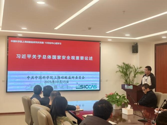 11月21日下午,中国科学院上海硅酸盐研究所生物材料与组织工程研究中心党支部组织召开党员大会,学习《习近平谈治国理政》第五卷、党的二十届四中全会精神及总体国家安全观,讨论预备党员转正事宜。支部14名党员以及1名预备党员参加会议,会议由支部书记马红石主持。