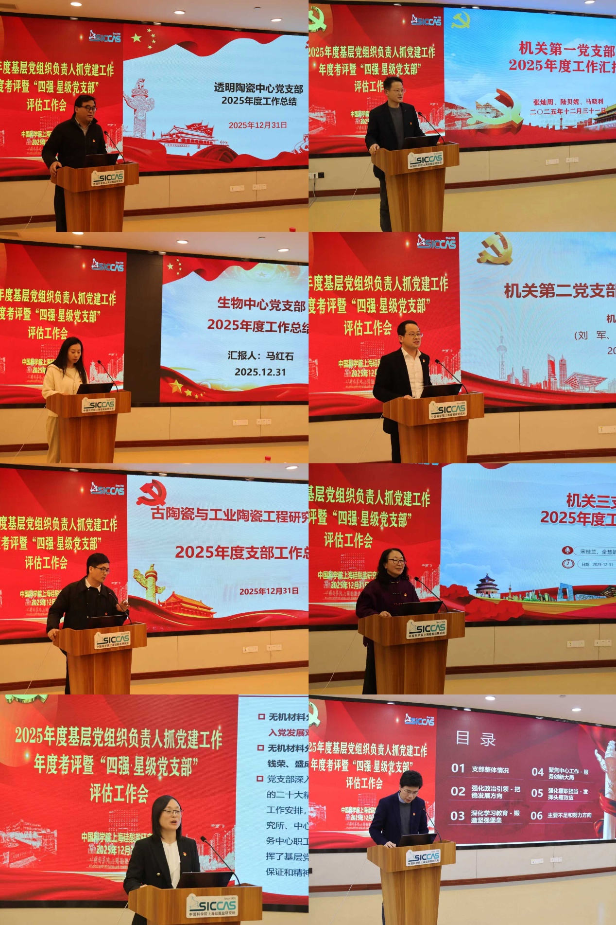 2025年12月31日下午,中国科学院上海硅酸盐研究所召开2025年度基层党组织负责人抓党建工作年度考评暨“四强·星级党支部”评估工作会议。上海硅酸盐所党委委员、纪委委员、相关业务与职能部门负责人代表、各党支部(总支)正副书记、工青妇组织负责人等50余人参加了会议。会议由党委书记王东主持。