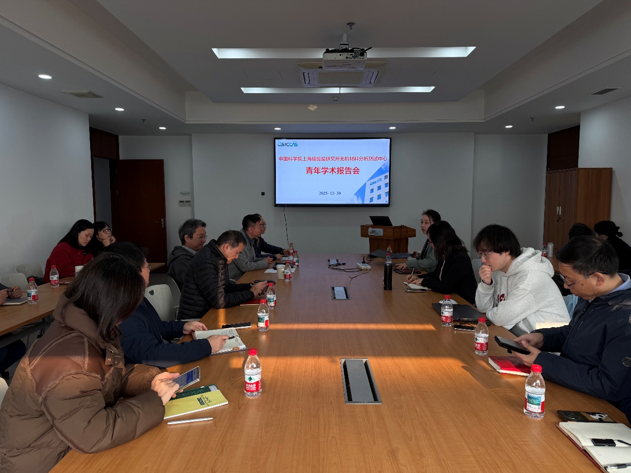 12月30日,中国科学院上海硅酸盐研究所无机材料分析测试中心召开了2025年测试中心青年学术交流会。基础科研处副处长沈沪江,测试中心主任曾毅,副主任许钫钫,党支部书记、副主任钱荣,来自中心和所内的40多名青年科研人员和研究生参加了报告会。报告会由许钫钫主持。
