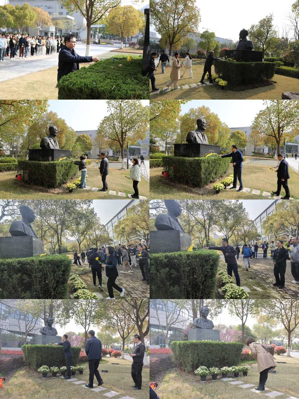 参加仪式的职工与研究生在雕像前整齐列队,气氛庄严而肃穆。在工作人员组织下,集体瞻仰雕像并行鞠躬礼,手持黄花依次缓步走到雕像前献花,以朴素深沉的方式,深切缅怀和致敬为研究所早期成立和开辟学科方向作出杰出贡献的老先生。