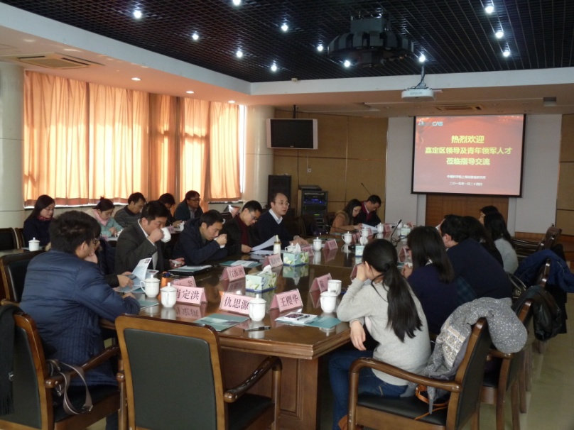 参会人员先后参观了上海硅酸盐所绿色光电转换技术研发项目部、中科院无机功能材料与器件重点实验室、碳化硅晶体项目部、蓝宝石晶体实验室以及上海电气钠硫储能技术公司。来访人员对上海硅酸盐研究所研发的高科技产品以及优越的科研环境与条件赞不绝口。会议期间,来自嘉定区环境监测站的副站长陆华,上海联影医疗科技有限公司分子影像事业部探测器研发经理的安少辉,上海新时达电气股份有限公司研发中心驱动硬件部门经理江振洲以及嘉定区中医医院医生肖定洪等嘉定区青年领军人才代表围绕生存环境、疾病诊断、生活安全、健康医疗等社会热点问题分别作了“PM2.5的来源、危害与检测”、“联影医疗产品—医疗诊断”、“新时达电气—电梯的安全使用”以及“客观、理性看待中医”等报告。上海硅酸盐所的青年科研人员代表杨松旺、毛朝梁、钱荣和陈峰等也作了上海硅酸盐所在基础研究、高技术应用以及产业化等方面的最新科研进展报告。一个个精彩纷呈的报告引起了与会人员的积极响应,并就报告内容展开了热烈的讨论。