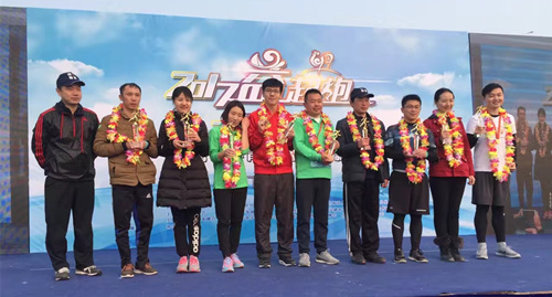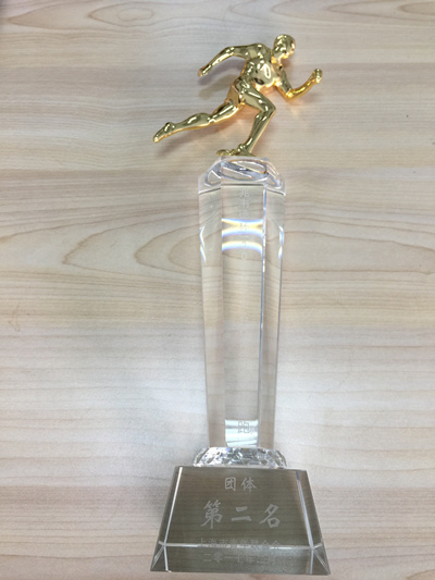 队长苏良碧代表团队领取“团体第二名”奖杯